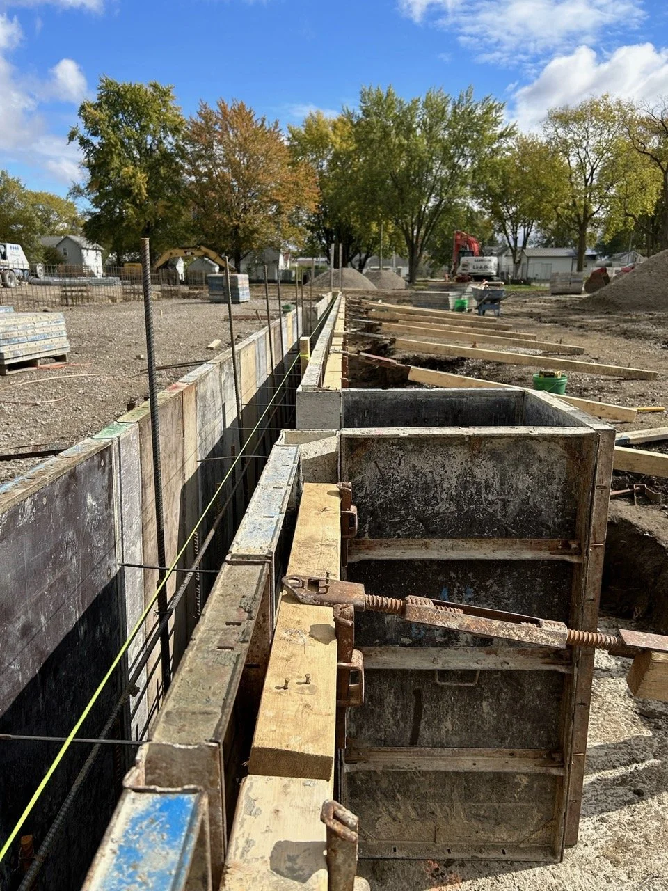 Concrete trucks continued to roll into the fairgrounds as crews poured the final portion of the north wall. They also poured the southernmost wall, which creates the lobby, offices, mechanical/electrical rooms, milking parlor and tank room, concessions, and restroom spaces. Ashbaugh Aerial is providing a high-perspective view of the concrete crews at work!